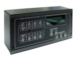 コントローラー「AVS-1200C」とスイッチャー「AVS-1200S」のセット。業務用のコントローラー、スイッチャー。小会議室などの映像システムの切り替え、室内照明のオン・オフ、スクリーンの昇降等が行える。