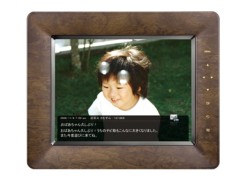 ●パネル:8インチ ●解像度:800×600ドット ●輝度:200カンデラ ●コントラスト:400:1 ●内蔵メモリー:64MB(フレームメモリー 32MB、電子メール 32MB) ●対応メディア:SDカード(2GB以下)/マルチメディアカード(2GB以下)/メモリースティック(16GB以下) ●再生フォーマット:JPEG/MPEG1/MPEG4/WMV9/MP3 ●消費電力:8W以下 ●外形寸法:228W×187.5H×45.5Dmm ●質量:827g