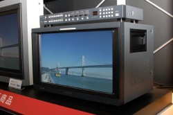ディスプレイ系では、ラックマウントに対応した17インチの液晶マスターモニター「BVM-L170」や、正確な色再現と忠実な描画性能を実現した23インチの最新モデル「PVM-L2300」を出展。両モデルともに独自の高画質技術“TRIMASTER”を搭載し、フルHD対応の10bitドライバーを搭載。120Hzのハイフレームレート表示にも対応している。他にも参考出展として、バックライトにLEDを採用した56インチのQFHD(3840×2160)画素の液晶モニター試作機も並ぶ。