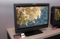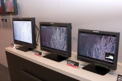 また同社が放送局向けに提案する液晶マルチフォーマットモニター“DTV”シリーズも、24インチの1920×1200画素モデル「DT-V24L3D」をはじめ、20/17インチの新製品が並ぶ。「L3D」の型番シリーズから、ディスプレイに映し出される映像の輝度をリアルタイムに確認できる波形モニターが新しく搭載されたほか、映像エンジンを進化させたことにより、ライブ映像に対するフレームディレイが1フレーム以下にスペックアップされている。