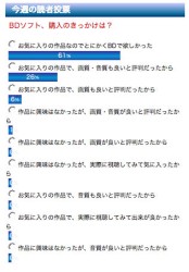 しかし、ただ沢山タイトル数が出れば良いというものではない。以前Phile-webで行った読者投票によれば、「作品に興味はなかったが、画質・音質が良いと評判だったから」購入した、と回答した方はごく少数派。やはりお気に入りの作品を、画や音が良いBDで見たいと考えている方が多いようだ。