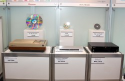 またパイオニアの光ディスク技術の進化がエコにも貢献していることをアピールするため、レーザーディスクプレーヤー、DVDプレーヤー、最新BDプレーヤー「BDP-LX70」を並べて展示。近い将来、同社の独自技術により20層、500GBという超多層化・大容量を実現した次世代光ディスクが登場することを紹介している。この次世代光ディスクは1層、4.7GBのDVD106枚分を1枚に収録できることから、ディスク製造時の原料、輸送時の燃料や電気の省エネに繋げることができる。