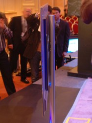 米国時間1月7日に開催されたパナソニックのプレスカンファレンスでは、スピーチの最後に薄さ8.8mmのフルHDプラズマパネルを搭載した50V型モデルの試作機が登場し、会場をあっと驚かせた。