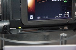 本体には2.8型の液晶ディスプレイと0.44型のビューファインダーを搭載する。プロユースを考慮したスイッチレイアウトや映像設定メニューが採用されている。本体にはXLRバランス音声入力端子を備え、ステレオLPCM 48kHz/16bitのオーディオファイル記録が行える。なお、静止画についても最大記録が素数1920×1080画素のJPEGファイルが撮影可能だ。