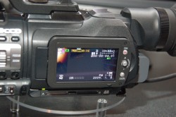 記録媒体にはSDHCメモリーカードを採用。本体側面に2基のスロットを設け、それぞれにシームレスでデータ記録が可能。2枚のカードへ最長約6時間の映像が連続記録できる。なお同時に2枚のカードに同じ映像をデュアルで記録することはできない。