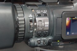 撮像素子には1/4型プログレッシブCCDを3枚搭載。豊かな色再現性と14bit DSPによる高解像度を実現している。また新開発のフジノン製10倍ズームレンズを搭載し、同じく新開発の光学手ブレ補正とともに、多様なシーンでの高画質撮影をサポートする。レンズはマニュアルフォーカス/ズームによる操作も可能。フィルター口径は46mmとなる。