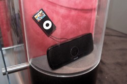 マクセルのブースは、会場の半分程度をヘッドホンやDAPのアクセサリー類が占め、光ディスクは片隅に置かれているだけ。ヘッドホンはノイズキャンセリングやイヤホンタイプなど多種多様なラインナップを紹介したほか、iPodドック搭載のポータブルオーディオシステムなども展示をおこなっていた。