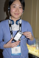 iPod用高音質システムを設置してあるブースでは、来場者が自分のiPodをドックに装着し、普段聴いているソースのなかから好きな曲を試聴できる便利さがあり、実際にそうして楽しんでいる現場にも遭遇した。もちろんUSBメモリーでも同じことができるが、いずれにしても数年前まで想像できなかった光景である。