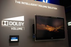 会場にはドルビーボリュームを搭載した欧米向け薄型テレビも展示。既に東芝“REGZA"でドルビーボリューム搭載モデルが発売されているが、欧米市場向けのテレビに採用されるのは今回が初めてだという。