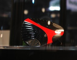 インパクトデザインアソシエイツ「Cy-Fi iPodバージョン」。社名のとおりインパクトのあるデザインのiPod用ワイヤレスアクティブスピーカー。スピーカーを自転車に取り付けて、iPodはトランスミッターで操作する。(ポータブルマルチメディアアクセサリー部門受賞)