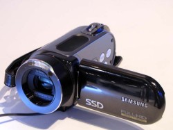 その他で注目だったのはサムスンの64GB・SSDを内蔵したHD対応ビデオカメラ「HMX-H106」である。これだけ大容量の内蔵メモリを搭載したビデオカメラはもちろん世界初。SSDはHDDよりも起動時間が早い上に耐振性の高さも大きなポイントで、ここまで大容量化が実現すると機能面でHDDにこだわる必要はもうなくなる。あとは価格がいかほどで設定されるかにかかるだろう。ちなみにCES会場で価格について尋ねてみたが、市場にはまだ登場していないので答えられないとのことだった。ただ、海外でのサムスンの認知度は結構高く、使い勝手の上からもSSDを使ったHD対応ビデオカメラとして注目されるのは間違いない。