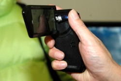 記録フォーマットはMPEG-4 AVC/H.264。記録方式はSDカードで32GBまでのSDHCメモリーカードに対応するほか、 約40MBのメモリーも内蔵。レンズは5倍ズームレンズを搭載している。