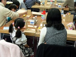 使用されたのは、ブックシェルフ型スピーカーのエンクロージャーを木工用ボンドで留めるキット。スピーカーを組み立て、楽しそうに音の原理やしくみが学ぶ親子の姿が多く目に付くイベントとなった。