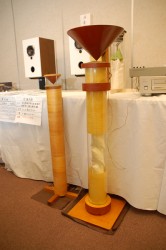 トザワ研究所は、オリジナルの紙風船状吸音材“戸澤式吸音レゾネーター”を搭載したスピーカーの実演を紹介。戸澤式アクリル管スピーカー 、戸澤式木管スピーカー、木皿儀スピーカーなど、同社ならではのユニークなモデルを展示している。