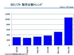 なおBDソフトは、2008年12月に過去最高枚数を販売。前月比2.1倍の好調な売り上げを記録した理由として「『ダークナイト』『バイオハザード』など注目度の高いタイトルが多数発売された」(BDA)ことを挙げている。