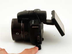 「Exmor」のサイズは1/2.4型で、有効画素数は910万画素。レンズには同社独自の「ソニーGレンズ」を搭載し、広角28mmからの光学20倍ズームが可能だ。その際の望遠端は560mm相当となる。また、液晶サイズは3.0V型で、角度が自由に変えられるマルチアングル仕様だ。