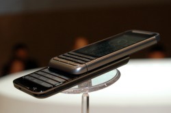 こちらは2002年に発表した“au design project”のコンセプトモデル「Grappa 002」が進化した、「Grappa 2009」とも言えるモデルとのこと。スライドボディを採用し、チタン化合物を薄膜コーティングしたステンレスフレームが筐体サイドを縁どる。キーボタンはアルミ製で、傾斜をつけたスラントキーとすることで押しやすさを向上させた。