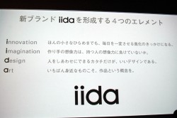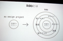 「iida」は「innovation」「imagination」「design」「art」の頭文字をとって名付けられたブランド。これまで同社は「au design project」でデザイン性の高い端末を世に送り出してきたが、「iida」は「LIFE>PHONE」をテーマとし、端末機のみならず、それを使用するシーン/ライフスタイルまでもデザインすることを目的としている。