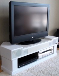 塗装は7回、磨きは2回行っているほか、テレビ台部分と前面中央部はレザー張りとし、高級感を高めた。また、テレビの台座部分に段差を設け、設置時にテレビ底部とテレビ台の隙間から背面が見えないよう工夫している。