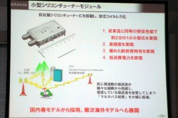 次に「デジタル環境下でのあるべき商品づくり」として、「小型シリコンチューナーモジュール」を開発。従来品の約2分の1のサイズながら高感度・耐妨害特性・低消費電力を実現したこのモジュールを、国内では春モデルから搭載。以降海外モデルへ順次搭載していく予定だという。