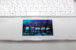 本機の最大の特徴は、LEDバックライトを使用した4型(解像度854×480)光センサー液晶タッチパッドを搭載している点だ。液晶上に光センサーを内蔵することで、指やペンでの操作に加え手書き文字などの入力を可能にしている。なお光センサーを使用しているため、光量が多いところ(真夏の直射日光があたる屋外など)では、周りの光に攪乱され動作が鈍くなる場合があるという。
