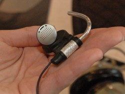 まずは米KOSSの6月頃の発売を予定している新製品から紹介しよう。ユニークな耳掛け方式のダイナミック型イヤホン「KDE/250」は、低域をカバーする20mmのトランスデューサーと中域以上をカバーする13mmのトランスデューサーを搭載し、周波数帯域は40〜20kHzとなる。耳掛け部は脱着式で、耳の大きさにあわせて3サイズの長さを用意している。価格はまだ未定とのことだが、3万円前後になる見込み。