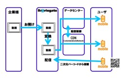 本サービスは、番組やCMを配信したいコンテンツ供給元がひとつの動画ソースファイルを預けるだけで、携帯機種ごとの最適化変換から効率的な配信マネジメントまでワンストップで配信できる様々な機能を装備したサービスプラットホーム。キャリアや端末ごとに異なる仕様を気にせずに従来よりも高画質の携帯電話向け動画を配信できる点が利点だ。