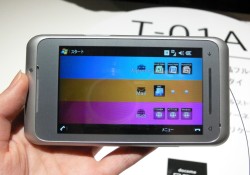 「T-01A」は、4.1インチワイドVGAのフルタッチ液晶パネルを搭載。さらに東芝製ノートPC“dynabook”の薄型化技術を応用し、9.9mmの薄型化を実現している。