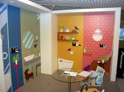 「パネル展示ゾーン」には、バスルームや書斎などをイメージしたパネルを用意。そこに「A-IW001」を埋め込み展示している。