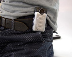 バッテリー込みで重さ95gという小型軽量のビデオカメラ。32MBのフラッシュメモリーを内蔵し、記録メディアはSD/SDHCカードで32GBまでに対応する。動画フォーマットはmov形式で、撮影モードは「H.264 1080P(30fps 12Mbps)」「H.264 720P(30fps 6Mbps)」「480P(60fps 5Mbps)」の3種類から選択できる。