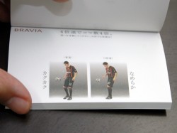 また、新CMに関連して、実際にパラパラ漫画で4倍速をユーザーも体験できる「<ブラビア>パラパラマンガメモ帳」も用意。一部の駅貼りポスターにメモ帳を直接貼り付け、自由に取って持ち帰れるようにするほか、家電量販店などでも配布する。なお、メモ帳を貼り付けるポスターは、新宿、池袋、渋谷、品川、川崎、名古屋の各駅が予定されている。