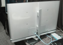 本体外観デザインや外寸は共通。レザー調のスリムベゼルに加えて、取り付けネジが見えないスタイリッシュな背面デザインとしている。スタンドは3段階の高さに調節が可能だ。本体付属のスピーカーは用途に応じて取り外すこともできる。