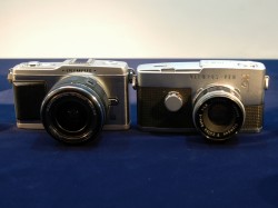 オリンパス、マイクロフォーサーズ準拠の“オリンパス・ペン”「E-P1」を発売