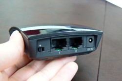スイッチひとつで5GHz/2.4GHz帯を切り換えることも可能。互換性が高い2.4GHz帯と干渉に強い5GHz帯を使い分けることができる。どちらを使用中かは、LEDインジケーターによって表示。5GHz帯時は青、2.4GHz帯時は赤、接続していない場合は無光となる。