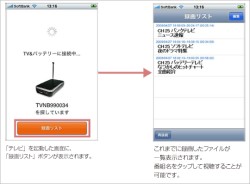 また、録画した番組は自動的に録画リストに保存され、iPhone 3Gと「TV&バッテリー」がWi-Fiにて接続されていない状況でも保存された録画ファイルを再生して視聴することが可能。録画ファイル視聴時は、再生以外にも早送り・巻き戻しを行うこともできる。