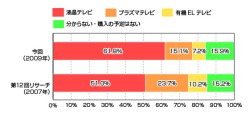 薄型テレビの所有率では、複数台所有している人を含め、67.6%の回答者がすでに所有しているという結果になり、2007年調査に比べ15%ほど高まった。