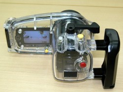 また4月下旬に発売した防水ケース「WP-V1」(関連ニュース)の使用も可能。浜辺やプールサイドなどでの使用に適した「水上モード」と、水中撮影に適したホワイトバランスに調整する「水中モード」の両モードが使用でき、防水モードを装着したままで両モードを切り替えることができる。