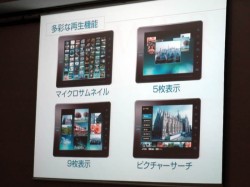 72コマの画像を同時に再生できる「マイクロサムネイル」や、大量の画像の中から目的の画像を検索する際に便利な「ピクチャーサーチ」などの再生機能を搭載。スライドショー再生は20種類を用意している。