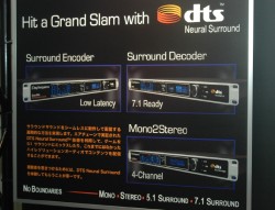 「AES 東京コンベンション 2009」の会場にてdts Japanは、放送局向けの音声圧縮技術「DTS Neural Surround」に関する展示や、エンコーダー「DTS-HD マスター・オーディオ・スイート」の最新バージョン2.0を紹介している。
