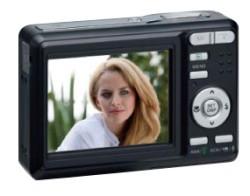 最大3,648×2,736(10M)の静止画のほか、720×400/640×480/320×240(フレームレート30コマ/秒)の動画撮影も可能。記録メディアはSD/SDHCメモリーカードに対応し、32MBのフラッシュメモリも内蔵している。1万円を切るモデルながら、顔追跡機能、スマイルキャプチャ、赤目軽減、手ぶれ軽減といった基本的な機能に対応する。