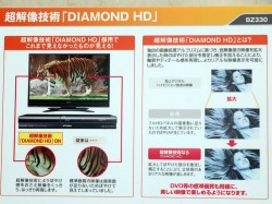 最上位モデルとなる「DVR-BZ330」には、超解像機能「DIAMOND HD」を搭載。独自の画像処理アルゴリズムにより、オリジナル映像のぼやけ成分を解析し、元の映像には存在しない高解像度の情報を推定して画質を補正する。