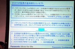具体的な共同プロモーションの内容として、パナソニックがAVATARとタイアップしたメディア宣伝を全世界で展開するほか、イベントなどの場でAVATARのフルHD 3D映像をデモ。さらに販促活動にもAVATARを利用していく。一つの映画作品をグローバルにプロモーション活動に利用するのは同社として初めての試みだという。