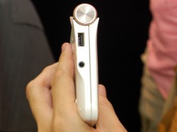 機体側面には、通常サイズとミニサイズのUSB端子をそれぞれ1系統ずつ装備。機体にはワイヤレスLANを内蔵しているほか、USB経由での各種通信モジュールとの接続にも対応している。また、3.5mmステレオミニジャックとmicroSDカードスロットも装備している。