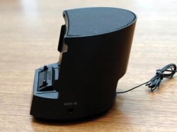 充電用のクレードルにバスレフ型スピーカーを内蔵した点が大きな特徴。本体内蔵スピーカーとあわせて、バランスのとれた迫力のある音でテレビやラジオを楽しめるように配慮している。