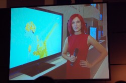 カンファレンスにはミスIFAも登場。「フラットなベゼルがカッコイイし、本体下部のブルーのオーナメントも綺麗。色も綺麗で写真みたい!これで省エネ性能も高いんですね」と、新モデルをレポートし、会場を盛り上げた。