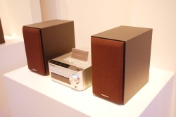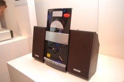 フラグシップの「C-616DV」はDVD/CD、ラジオの再生が楽しめるスタイリッシュなオーディオシステム。本体フロントパネルに再生中のディスクを縦にセットするデザインを採用。ブルーのLEDがスタイリッシュな音楽リスニングを演出。全体はモノトーンのカラーリングとしている。センターユニットとセパレートして設置できる2Wayタイプのスピーカーがセットになっている。本機専用設計のiPod Dockも付属。Dockには映像出力用にコンポーネント色差端子も搭載されている。USBメモリーやSDカードに保存したMP3/WMAの音源ファイルの再生も可能。アンプの実用最大出力は20W+20W。HDMI端子やサブウーファー出力、ヘッドホン出力も備える。ヨーロッパでの予定売価は299ユーロ。