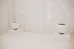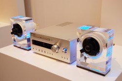 オーディオ製品の既成概念を取り払って、「今までに無かったような美しいフォルムに音と光の融合を実現した」という、照明器具のスペシャリストであるオーデリック社とのコラボによって誕生したガラススタンドスピーカーシステムとK-series「R-K711」との組み合わせを紹介。スピーカーの高音質技術はケンウッドの提供によるもので、部屋の天井へのインストールなど新たなオーディオリスニングの楽しみ方を提案するモデルだ。イルミネーションスタンドの色を青と白でオプションとして用意しており、スピーカー本体の下に敷くスタンドを交換して楽しむこともできる。