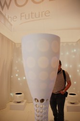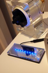 今春にイタリアのミラノで開催されたデザインイベント「ミラノサローネ」にも出展された、デザインスピーカーのコンセプトモデルも展示(関連ニュース)。世界で活躍するインテリアデザイナー クラウディオ・コルッチ氏とのコラボレーション作品である、オブジェと音が融合したスピーカー「squeezophone360°」や、ケンウッドデザイン独自開発のプロトタイプモデルとなる「HIBACHI」、「HUG」の2モデルも展示する。