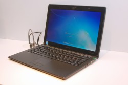 筐体はカーボンとプラスチックを積層したもので、高い耐久性を持つ。ブースでは説明員が本機を手荒くテーブルに叩きつけたりして、本機の丈夫さをアピールしていた。またヒートシンク機構は2.5mmのファンを搭載するほかバッテリーの上にグラファイトシートを敷などの工夫が凝らされている。なお本機は日本でも近日発売のアナウンスを予定しているとのことだ。