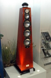 ブースには同社のフラッグシップモデルとして君臨する「SPIRIT OF MUSIC CE」も展示。143cmの高さと個性的な外観を持つ本機は、お馴染みのJET IIIトゥイーターに加えヴァン・デン・ハル社と共同開発したスーパートゥイーター4Piを搭載。さらにはクリスタルラインによる2 基のウーファーと1基のミッドバス、1基のミッドレンジを採用した5ウェイモデルとなっている。ターミナルにはWBT社製の金メッキ端子を採用する。